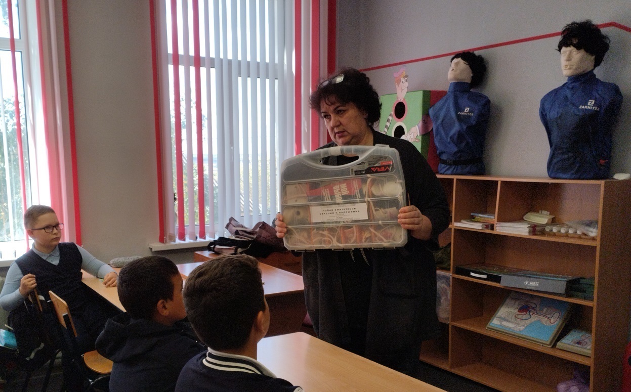 Педагог центра Либерова Е.В. вместе с учениками 5 В класса отправились в путешествие по стране безопасности. Школьники познакомились с опасностями, которые окружают нас в быту, на улице, в общественных местах, узнали, как спасти собственную жизнь до приезда врачей. Детей в первую очередь привлек сердечно-легочный тренажер по имени Гоша: они усердно выполняли ему непрямой массаж сердца, а самые отважные даже попытались провести искусственную вентиляцию легких. Мероприятие прошло очень динамично.