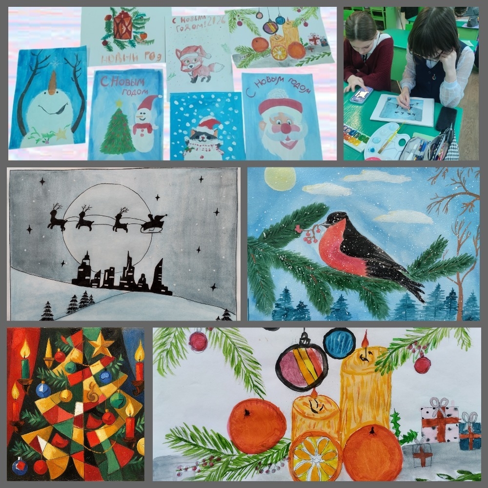 Учащиеся 5-9 классов с помощью красок, карандашей и цифровых технологий воплотили на бумаге свое видение Нового года. В работах ребят ожили не только традиционные Дед Мороз и Снегурочка, но и помощники, сказочные существа из зимних легенд и целые города.